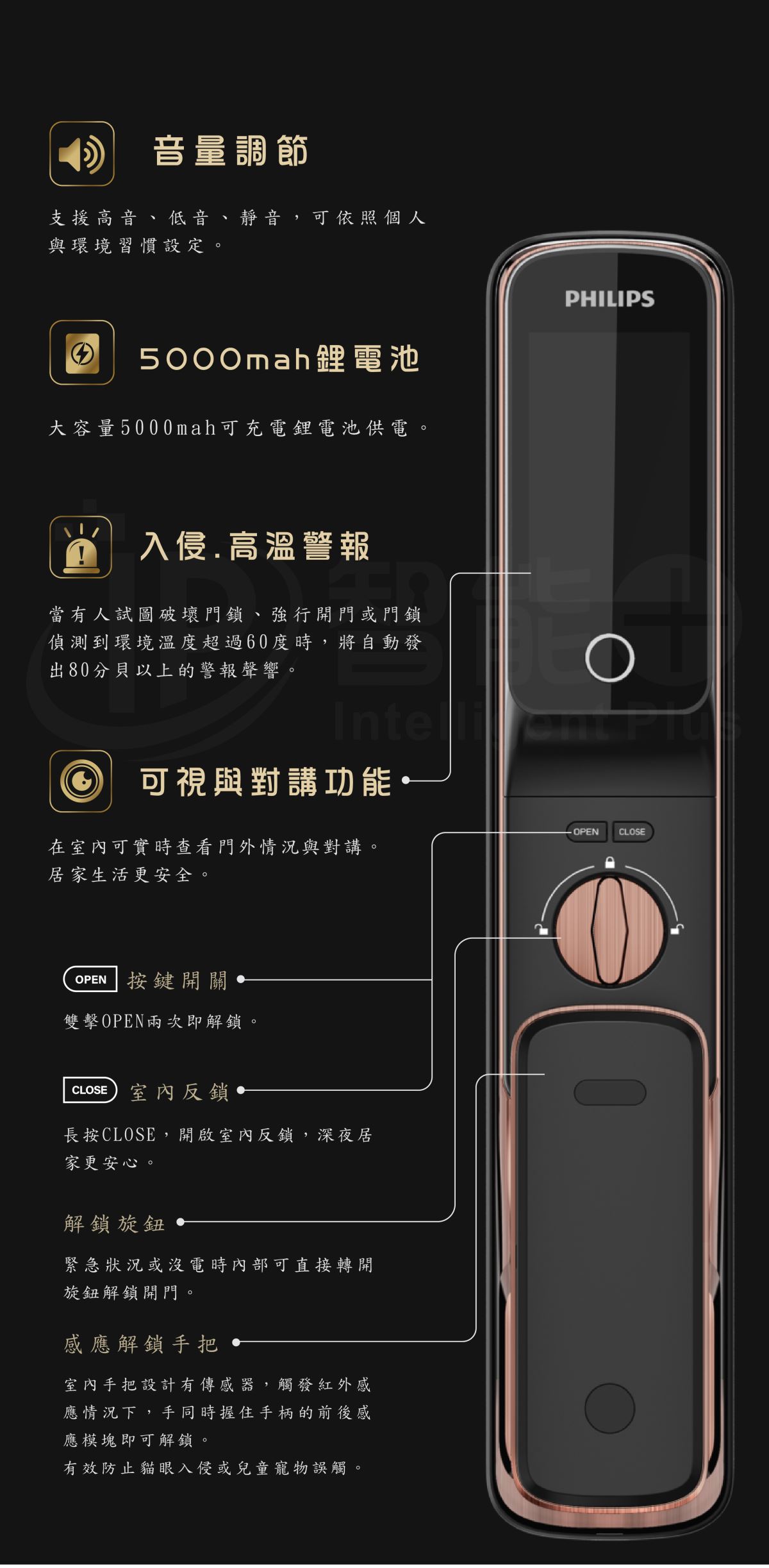 PHILIPS Alpha 指紋/卡片/密碼/鎖匙/wifi 5合1